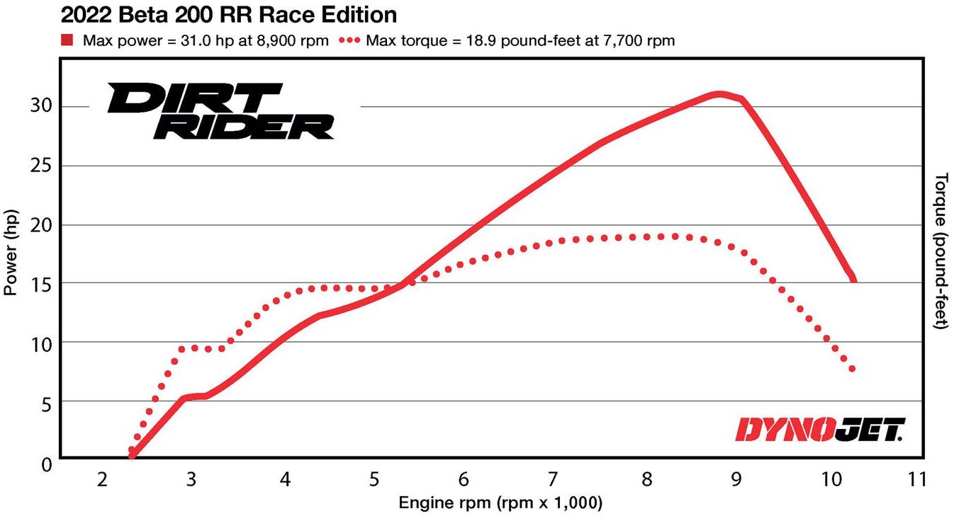 Beta 250RR two-stroke dynamometer test, property of dirtrider.com